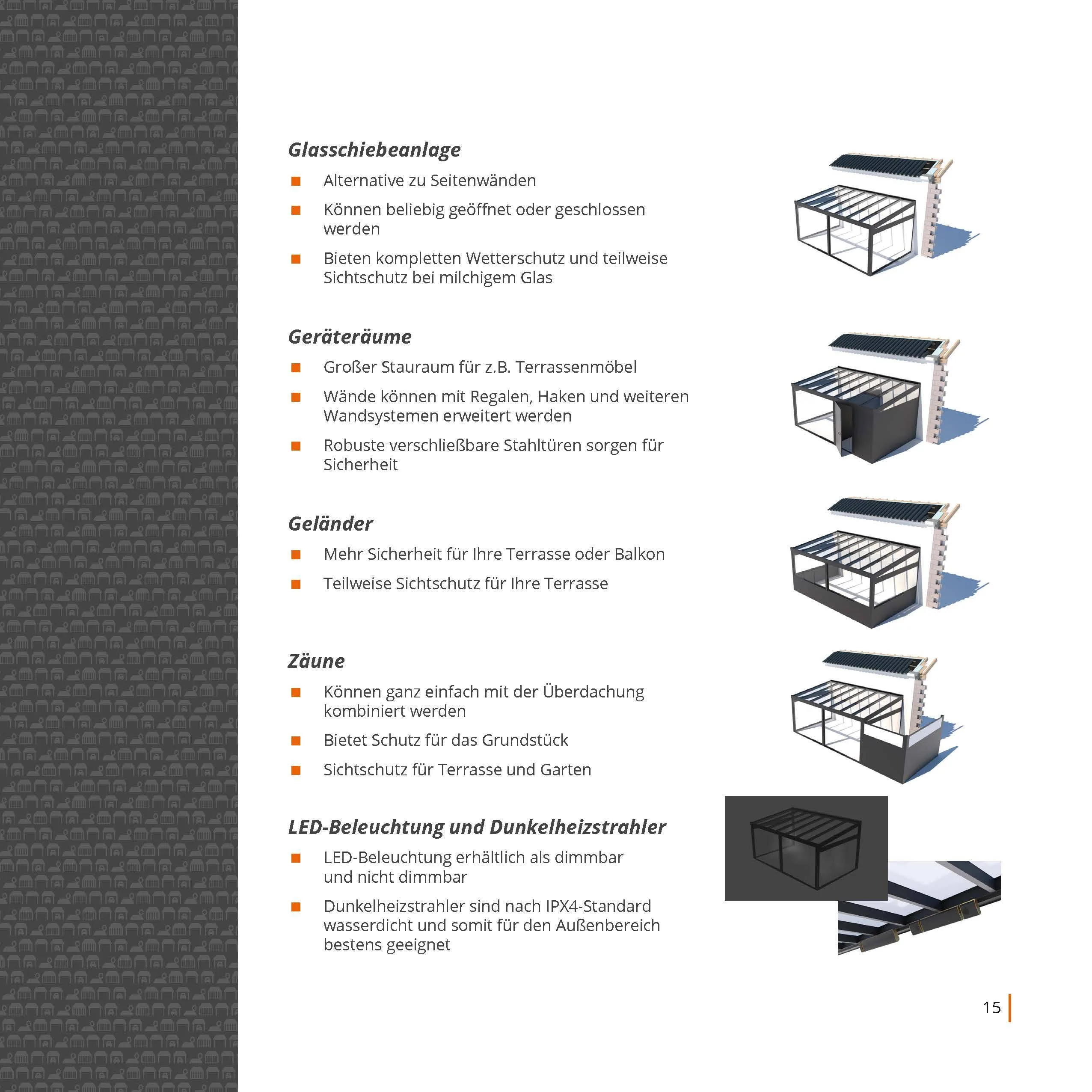 Unsere Terrassenüberdachungen sind flexibel in Größe und Form, damit sie perfekt zu deinem Zuhause passen. Du kannst zwischen Einzelmodulen und individuell kombinierbaren Koppelanlagen wählen:
